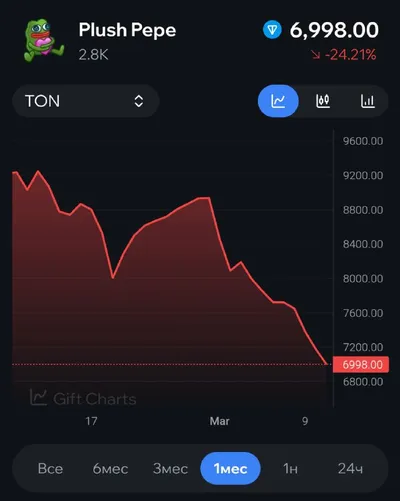 🎁 Пепе упала в цене и стоит всего 6998 ☺️ (около 730.000р) Закупаемся? 💬 Наш чат ⭐️Дешевые звезды