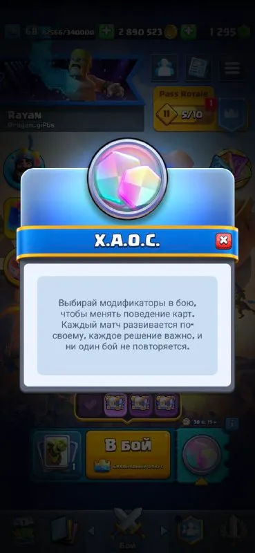 ❤️🔥 В Clash Royale добавили имбовый режим - Хаос ✔️ У башен 6000 хп и в бою появляется выбор модификаторов - например бочка с большими гоблинами или 2 куста вместо 1 💬 Режим очень веселый