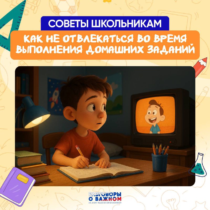 Советы школьникам: как не отвлекаться во время выполнения домашних заданий 🔸 Приведите в порядок рабочее место Для учёбы лучше выделить отдельное место, которое не связано с отдыхом. Так вашему моз