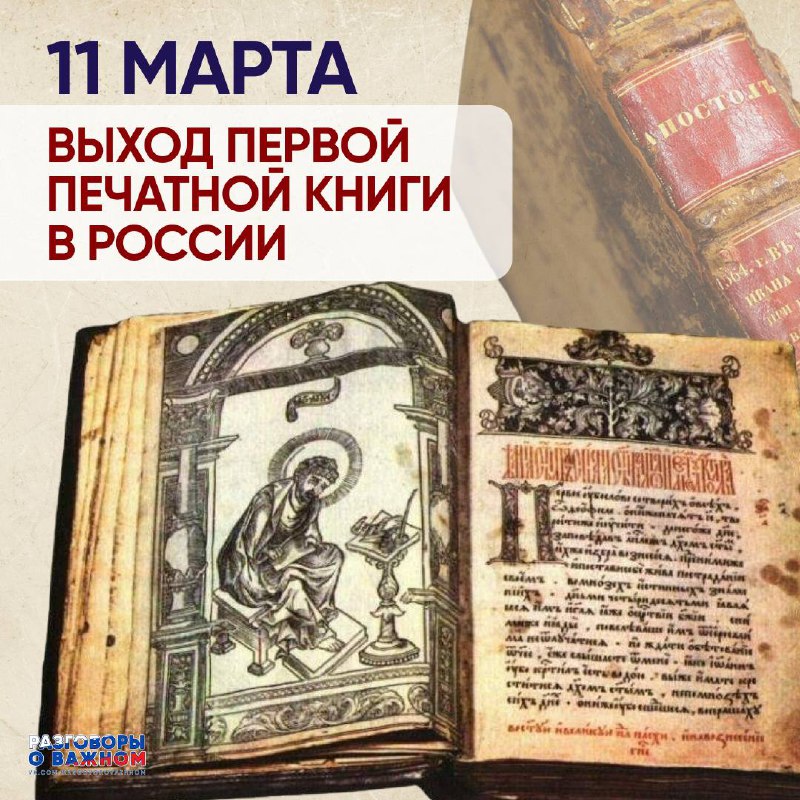 📖 Выход первой печатной книги в России 11 марта 1564 года в Москве вышла первая точно датированная русская печатная книга — «Апостол». Её издали первопечатники Иван Фёдоров и Пётр Мстиславец. Этот д