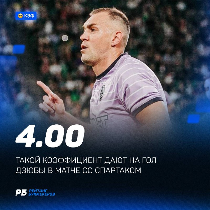 Артем Дзюба забивает «Спартаку» в трех последних матчах Поразит ли Артем ворота родной команды снова? 🔥– ставлю на гол 🗿– не забьет 🤩 Ставь на гол Дзюбы со страховкой до 3000 рублей от LEON