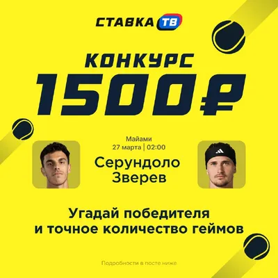 🎾 БЫСТРЫЙ РОЗЫГРЫШ 1500 РУБЛЕЙ! 🔥 ПЕРВЫМ угадай победителя и точное количество геймов в матче 🇦🇷 Франсиско Серундоло – Александр Зверев 🎾 и выиграй полтора косаря 💸 Если ты верно предскажешь п