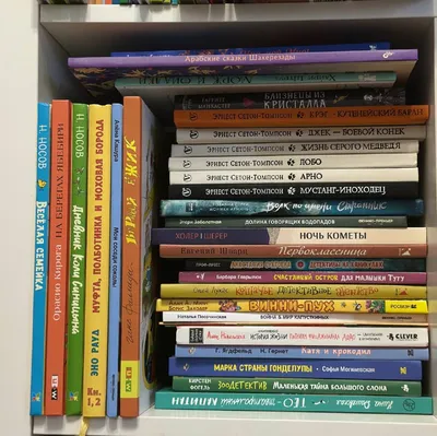 Я уже это делала…но книги прибавились и уже не помню под каким тегом выкладывала. В общем, потихоньку снова навожу порядок. Вот вам сняла одну полку. Второй ряд-уже прочли, лежит Кириллу. Первый ряд