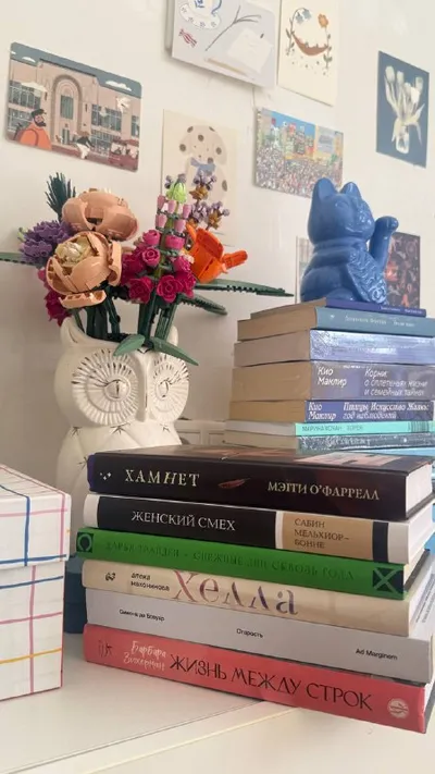 она: никаких новых книг дома, пока не прочитаю то, что уже есть на полках также она: 📚📚📚