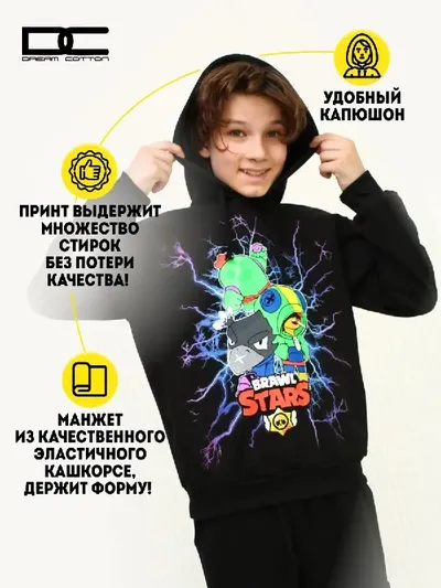 Худи оверсайз Бравл Старс с капюшоном (110-116,116-122,122-128 р-р) Цена сейчас: 329 ₽ (-27%) Старая цена: 448 ₽ Отзыв покупателя: Сын в восторге) яркий принт, хз как после стирки будет ⭐️ 4.9 (610