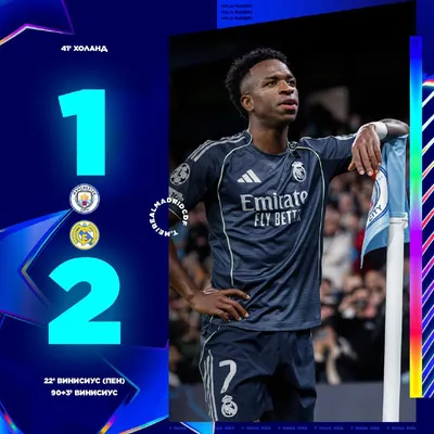🏁 Матч окончен! «Этихад» увидел ремонтаду Винисиуса после прошлого нереализованного пенальти. «Реал Мадрид» в четвертьфинале Лиги чемпионов. #HalaMadrid 🏆