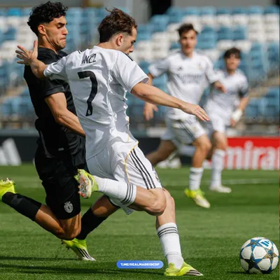 🏆 Первый тайм окончен. «Реал Мадрид» (U-19) 0️⃣–1️⃣ «Спортинг» (U-19) «Мадрид» контролировал ход игры, имея 72% владения мячом. Однако под конец тайма Марио Ривас допустил катастрофическую ошибку.