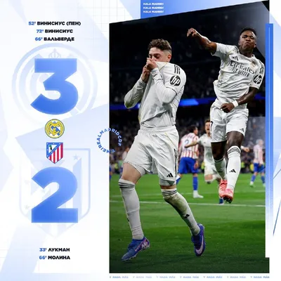 🏁 Матч окончен! «Мадрид» белый, как и всегда! «Королевский клуб» добывает важнейшие 3 очка в дерби. #HalaMadrid 🏆