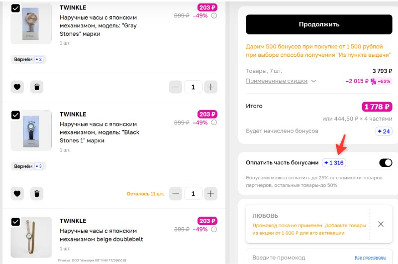 ‼️🧴 Девочки! Не могу молчать, вот правда. Часы TWINKLE от 203 (!!!) рублей с учетом списания бонусов магазина⤴️ Выносим себе и на подарки, такой цены на хороший бренд на найдете больше нигде, это к