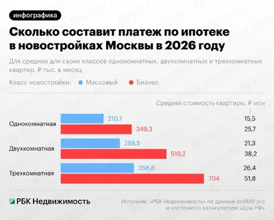 🧱🧱🧱🧱 Сколько составит платеж по ипотеке в новостройках Москвы в 2026 году ▪️Ставка, по которой предлагается взять рыночную ипотеку на новостройки, за последний год снизилась на 9 п.п. Однако она