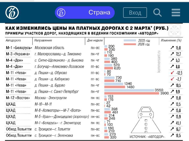 Госкомпания «Автодор» с 2 марта установила новые тарифы на проезд по платным дорогам, увеличенные в соответствии с ежегодной индексацией. Цены для владельцев легковых автомобилей повысились в среднем