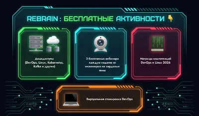 ⚫️ Все бесплатные активности от Rebrain в одном месте 📁 Начните учиться бесплатно — пробуйте демодоступы к практикумамам 🟢DevOps 🟢Linux 🟢Kubernetes Base 🟢Kubernetes Admin 🟢Kafka 🟢Docker 🟢Net