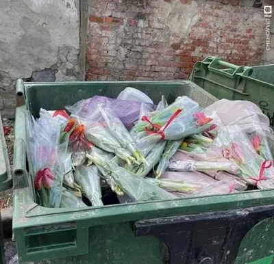 Сотни тюльпанов отправились на свалку в подмосковном Чехове. Жители публикуют фото заваленных мусорок: нераспроданные цветы выкинули пачками, даже не пытаясь отдать по дешёвке или просто подарить.