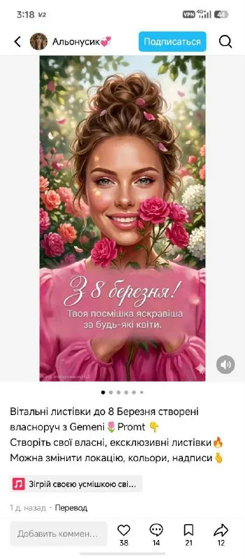 С 8 марта мои дорогие подписчики!!! Мне прислали скрин , что кто то взял мой Промт , мой ответ