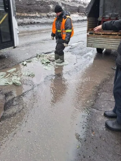 Новую технологию ремонта дорог запечатлели на Камчатке На магистралях города выбоины начали консервировать кустарным способом — ямы затыкают мешками с песком. Влажные условия не позволяют класть асфа