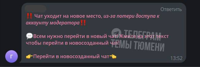 ⚠️ Осторожно, мошенники! Неизвестные крадут аккаунты жителей Тюмени, пользуясь слухами о замедлении Telegram. Они рассылают фальшивые сообщения о «переезде» того или иного чата и заманивают пользоват