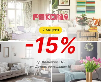 💥💥СКИДКА 15% по карте «РЕКОМА» 7 марта!*💥💥 Встречаем весну и обновляемся! Стройматериалы, сантехника, инструменты, мебель и товары для дома по выгодным ценам! ➡️Приглашаем в наши магазины: на пр