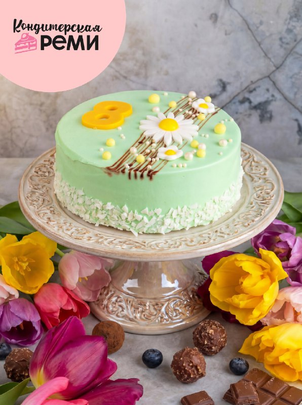 Сладкое угощение к 8 Марта! 💛 Приближается самый нежный и весенний праздник! И, согласитесь, есть вещи, без которых этот день просто немыслим. Цветы, подарки, тёплые слова… и, конечно же, торт! Наши