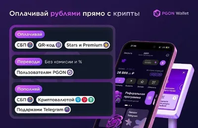 🛡Крипту теперь можно спокойно выводить на карту или по СПБ — без p2p и сомнительных переводов. 🌟PGON Wallet делает всё автоматически: вы пополняете любой криптой, а система сама конвертирует в рубл