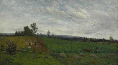 Карл Бухгольц (Karl Buchholz, 1849-1889) - немецкий художник. "Пейзаж с урожаем картофеля, Веймар" (Landschaft mit Kartoffelernte, Weimar), 1885 г. Холст, масло. 42,5 х 71,5 см. МЫ В МАХ 🔥 подписать
