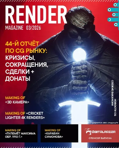 Вышел мартовский номер журнала Render Magazine! Это 24-й выпуск журнала, который стал возможен благодаря нашему спонсору, компании DigitalRazor. В выпуске: ежемесячный отчет о ситуации в CG на сегод