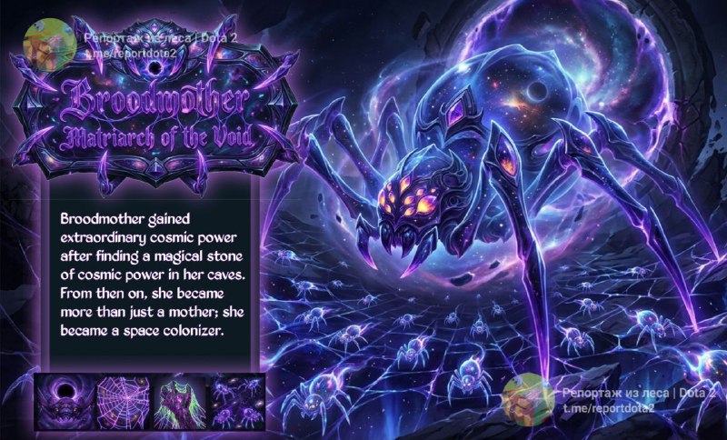 😍 Шикарный концепт арканы на паучиху 👍 — 10/10, прямо имба лютая, хотел бы такое в игру 🥴 — ну такое себе, мне не очень зашло 👹 — это дочь бруды и энигмы? 🙂 Репортаж из леса | Дота 2