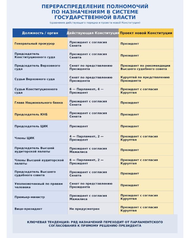 😐 Посмотрите (очень наглядно), как усиливается президентская власть в новой Конституции РК, которую будут принимать на референдуме 15 марта. 📌 Со страницы Vladimir Dvoretskiy