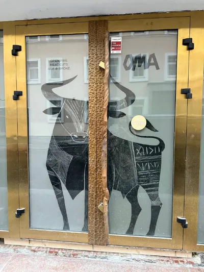 Вход в ресторан на Патриках рядом с 800 Contemporary Steak, который я сфотографировала в конце декабря 2025 года, оказался баскским стейк-хаусом ОМА от Михаила Гохнера (Bocconcino) и на днях открыл дв