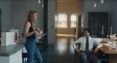 Настроение дня: Каролин Биссет и Джон Кеннеди мл. с KFC на ужин. Кадр из сериала Love Story.