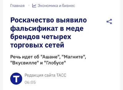 ⚡️ Роскачество обнаружило фальсификат в меде собственных марок крупных торговых сетей. Продукция под брендами «Ашан» и «Магнит» не соответствует определению меда из-за грубых нарушений, включая несоот