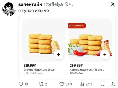 ⚡️ В сети фастфуда большая порция сырных медальонов оказалась дешевле меньшей. Пользователи соцсетей обратили внимание на эту странность в ценообразовании. 📲 Ритейл в Max