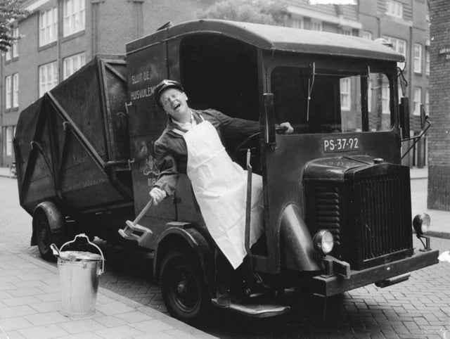 Веселый мусорщик со специальной трещеткой, которую он использовал дабы возвестить жителей о своем приближении, Амстердам, 1950 е 🔤🔤🔤🔤🔤▶️