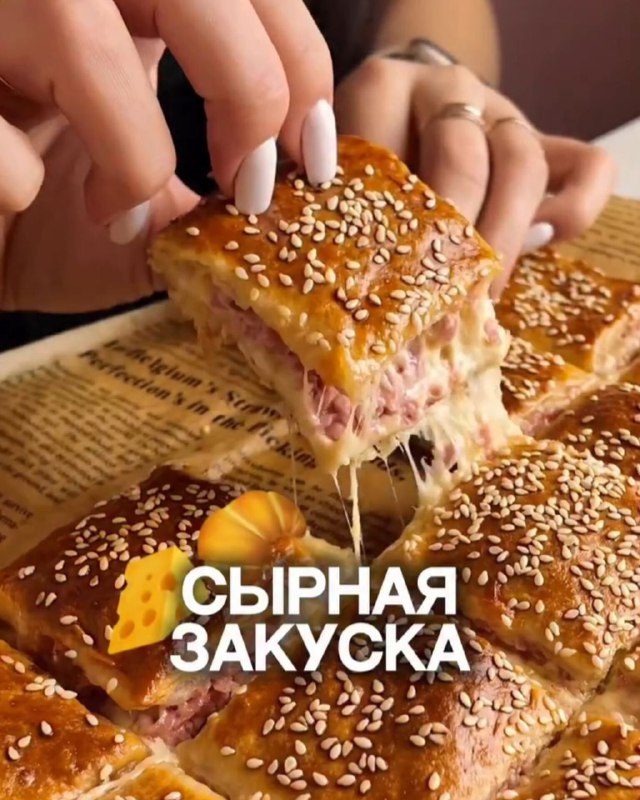 Закуска из слоеного теста с колбаской и сыром