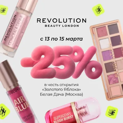 Москва! Makeup Revolution приглашает на праздничное открытие нового "Золотого Яблока" в ТЦ Мега Белая Дача и с 13 по 15 марта дарит скидку 2️⃣5️⃣🔣на весь ассортимент бренда в этом магазине. Ждём ва
