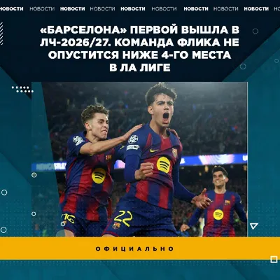 🇪🇸 «Барселона» стала первой командой, квалифицировавшейся в ЛЧ-2026/27 Реальный Футбол LIVE