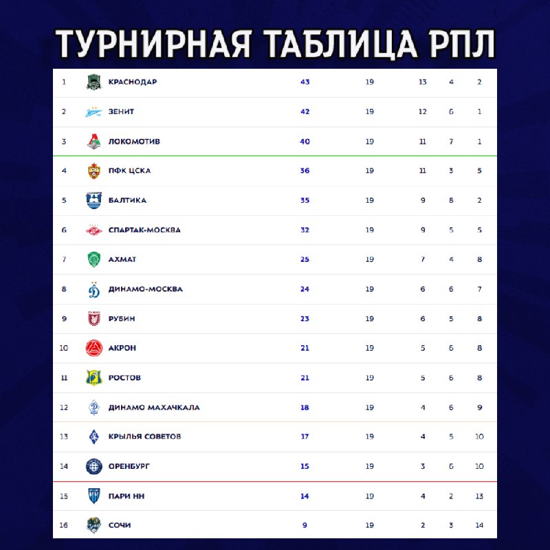 "Краснодар" сохранил лидерство, "Зенит" остался вторым, "Локомотив" - третьим по итогам 19 тура РПЛ