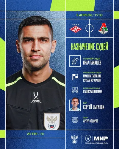 🚩 ❤️❤️ Инал Танашев рассудит дерби #СпартакЛокомотив РФС публикует назначения арбитров на 23-й тур Мир РПЛ.