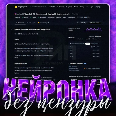 ⚡️ Самую БЕЗУМНУЮ нейронку выложили в сеть — это кастомная модель Qwen 3.5 c пометкой Agressive, в которой вырезана ВСЯ ЦЕНЗУРА ✅У модели осталось 0 из 465 отказов по любой теме: у неё ВООБЩЕ отсутст