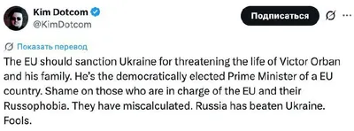 ЕС должен ввести санкции против Украины за угрозы жизни Виктора Орбана и его семьи. Об этом заявил финский бизнесмен Ким Дотком. «Позор тем, кто руководит Евросоюзом, и их русофобии. Они просчитали