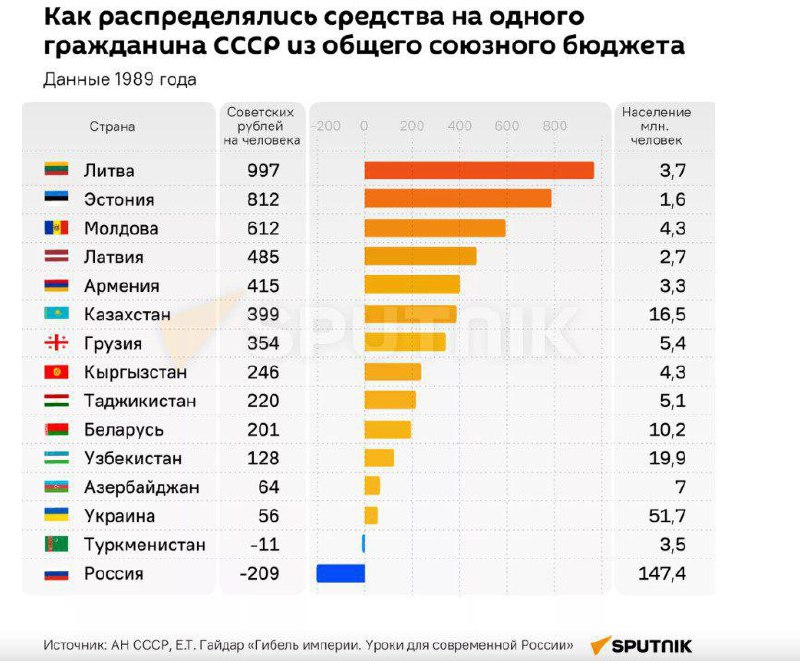 Напоминание красно-коричневым и прочим любителям СССР Категории снабжения по регионам СССР и распределение средств между гражданами разных республик Как видно из инфографики (1989 год), СССР был "им