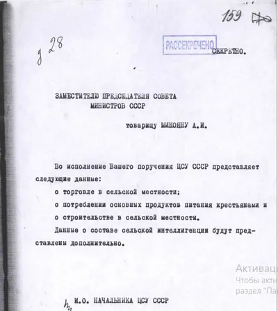 Данные о потреблении продуктов питания крестьянами и о строительстве в сельской местности в 1913, 1923/24, 1928/29, 1936, 1940, 1950, 1952 гг. и первом полугодии 1953 г. 5 октября 1953 г.