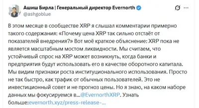 🗣 Ашиш Бирла, генеральный директор Evernorth, о цене XRP. пост 🪙@rippleweb