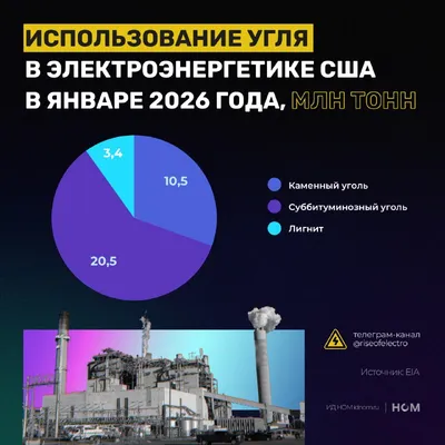 Трамп обеспечил угольной генерации «красивую старость» ⚡️ Прошлый год был достаточно благоприятным для угольной генерации в США: объем выработки из угля по итогам 2025 г. увеличился на 13% (до 737 мл
