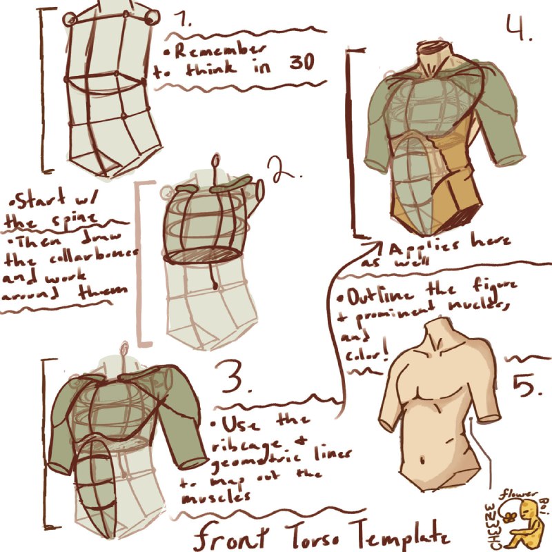 Зарисовка торса от cheezeeflowerboi👤 #туториал #подсказки 🖌Учимся рисовать с @risovanie_tg