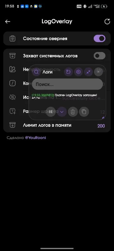 📝 LogOverlay - 1.0.6 Плагин для разработчиков. Отображает логи етг в реальном времени. Изменения: - Новый интерфейс (+ цветовой акцент из темы) - Улучшена работа с логами - Функция системных логов -