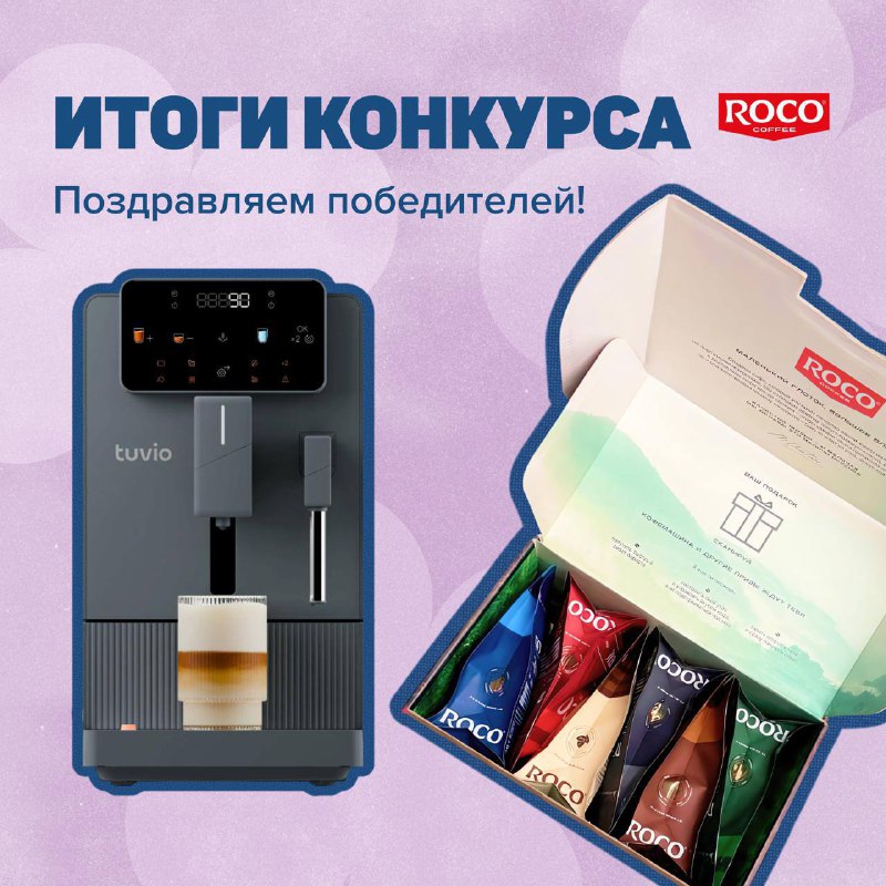 Подводим итоги розыгрыша! Три недели назад мы проводили конкурс — благодарим всех за участие! В этот раз кофемашину Tuvio получает @Saggitarium А наборы ROCO Coffee отправляются домой к: @slawv