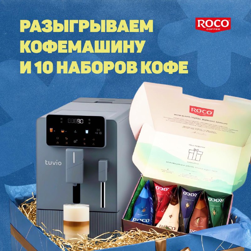 Соскучилась по подаркам? Не можем надолго оставлять тебя без презентов — дарим кофемашину Tuvio и запас зерна ROCO Coffee. Чтобы утро начиналось с аромата кофе, выполни три условия: ✔️ Подпишись