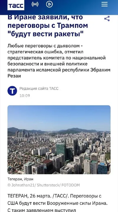 26.03.2026 Иран: Любые переговоры с дьяволом - стратегическая ошибка. Пусть переговоры с Трампом ведут ракеты. Россия: Делегация депутатов Госдумы отправилась в США для восстановления диалога. @rom