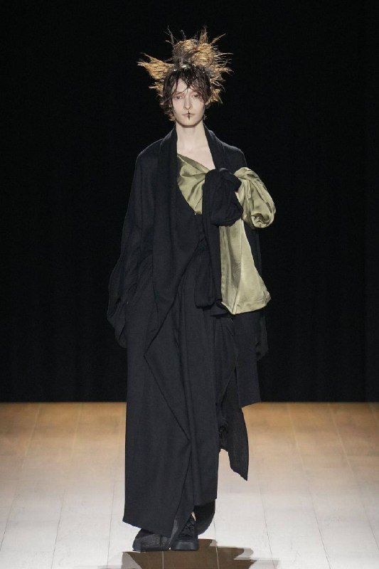 Заканчиваем день с очень красивой, меланхоличной коллекцией Yohji Yamamoto Мне очень нравятся принты, а также редкие вспышки цвета, которые тут являются будто частичками заката, перетекающими в сумра