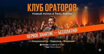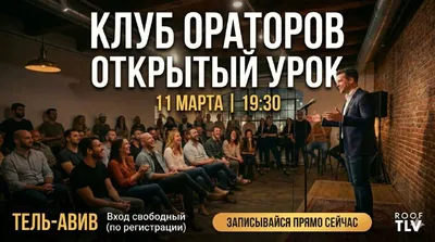 🎤 Открытый урок в Клубе Ораторов! 11 марта. Тель-Авив, 19:30 Первое занятие — бесплатно Стартуем новый поток курса. 🔥 Твой голос — ценный инструмент. Хватит бояться им пользоваться. Молчишь на сов